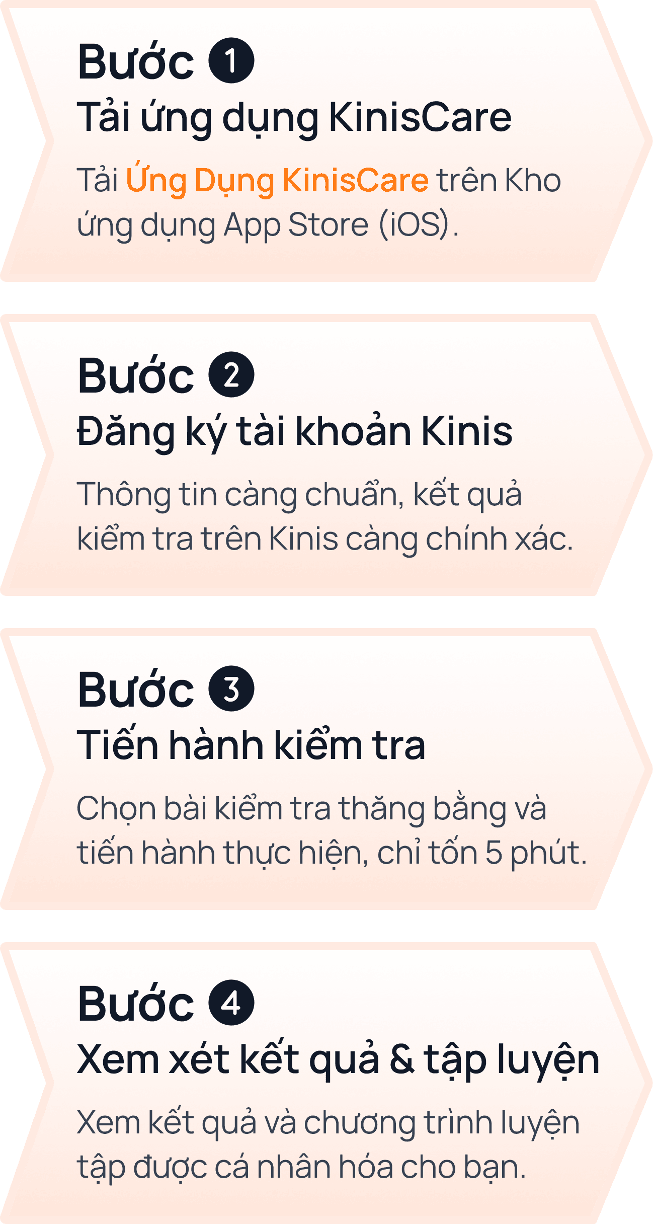 Hiện nay, bạn có thể kiểm tra chỉ số thăng bằng tại nhà thông qua ứng dụng Kinis hoặc kiểm tra trực tiếp tại các hệ thống phòng khám đối tác của Kinis.